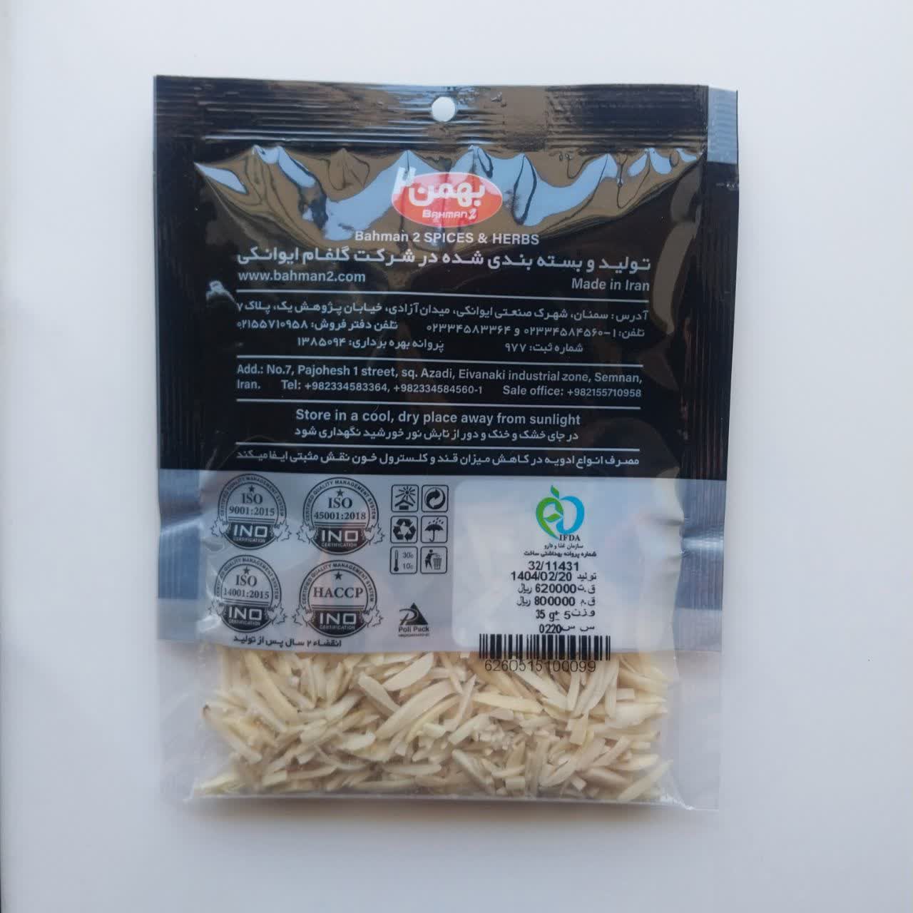 خلال بادام ۳۵ گرمی پاکتی؛ یک محصول کوچک با تأثیر بزرگ! طعم بینظیر بادام در هر دسر، کیک یا پلو.