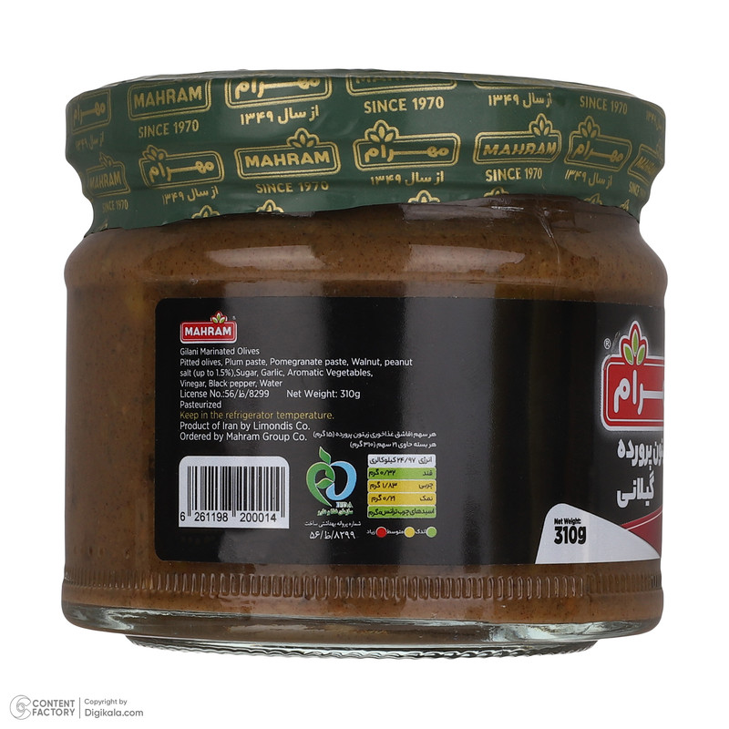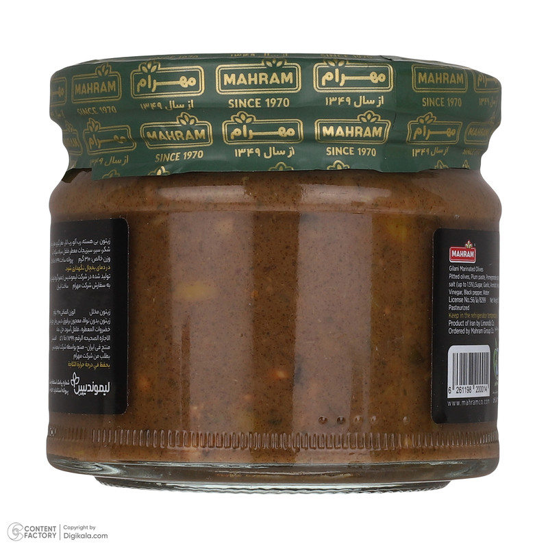 زیتون پرورده گیلانی مهرام – چاشنی اصیل گیلان با زیتون سبز، گردو و سبزی معطر؛ آماده سرو و همراهیگر غذاهای ایرانی.